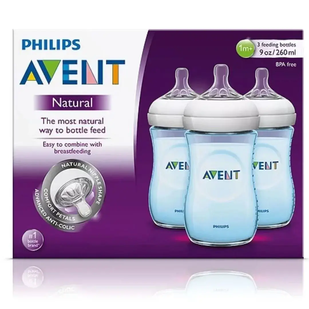 Avent Natural Biberon, Set x 3 ud 9oz, azul